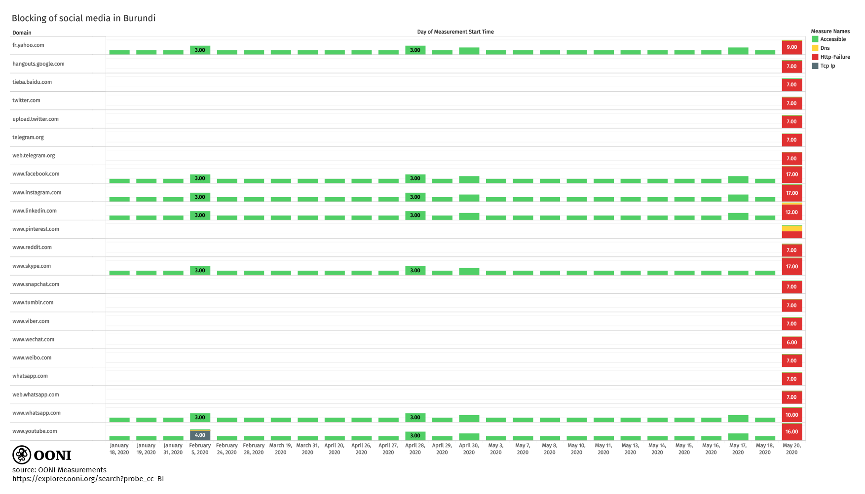 Source: OONI measurements collected from Burundi, https://explorer.ooni.org/search?until=2020-05-22&probe_cc=BI&test_name=web_connectivity